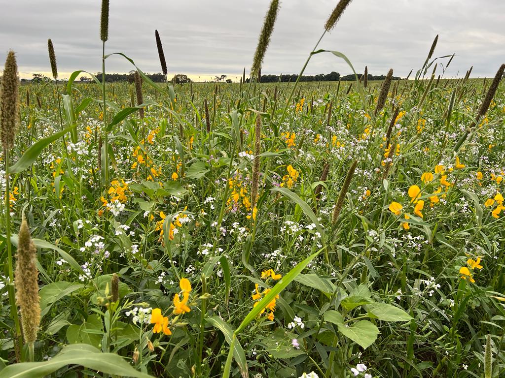 - Produção de Biomassa: com a diversidade de plantas em um mesmo espaço, irá maximizar a cobertura do solo. Com a diversidade de plantas e com espécies com Resistencia prolongada, irão contribuir para melhoria dos atributos físicos, químicos e biológicos do solo, auxiliando no manejo das plantas daninhas, nematoides, doenças radiculares e outras.
